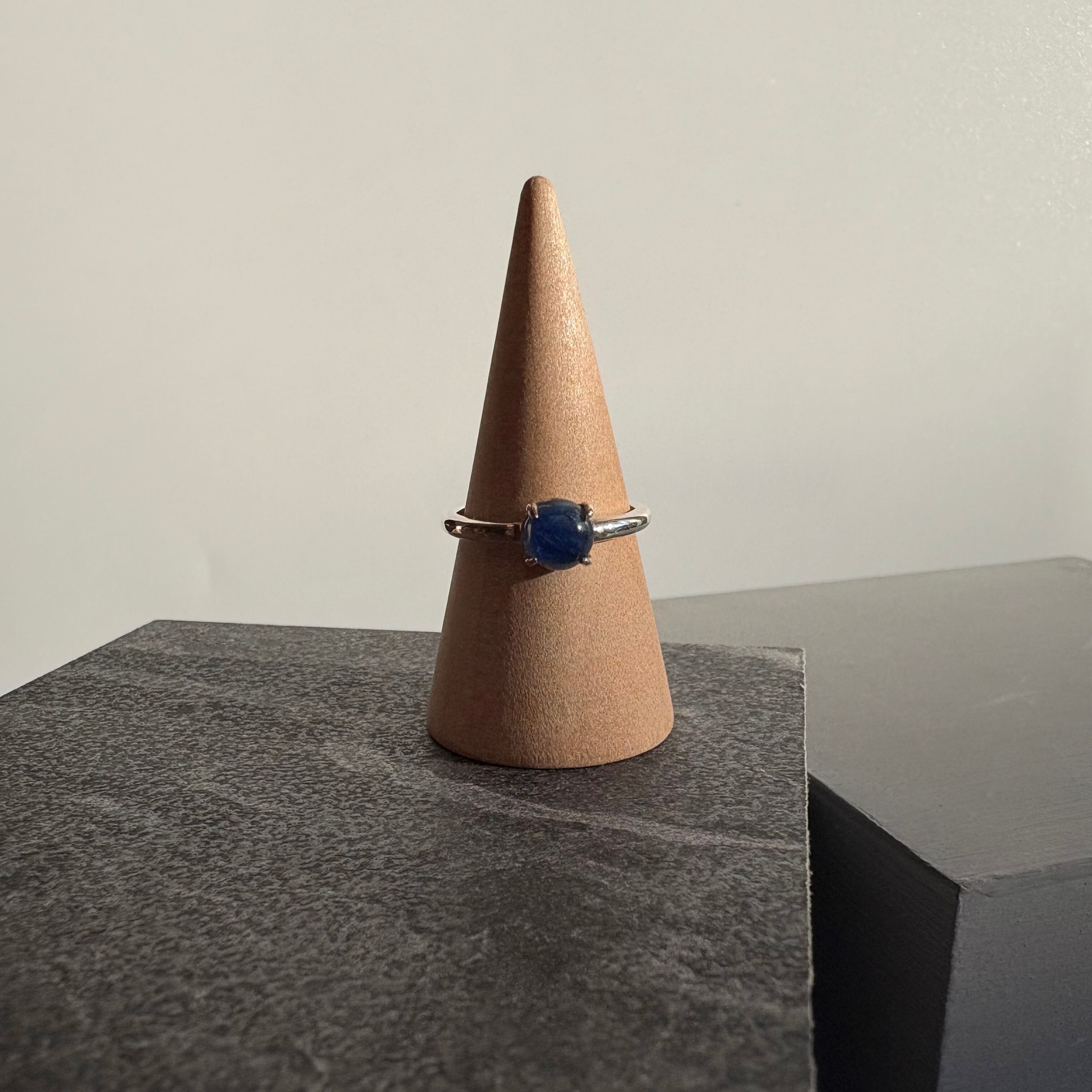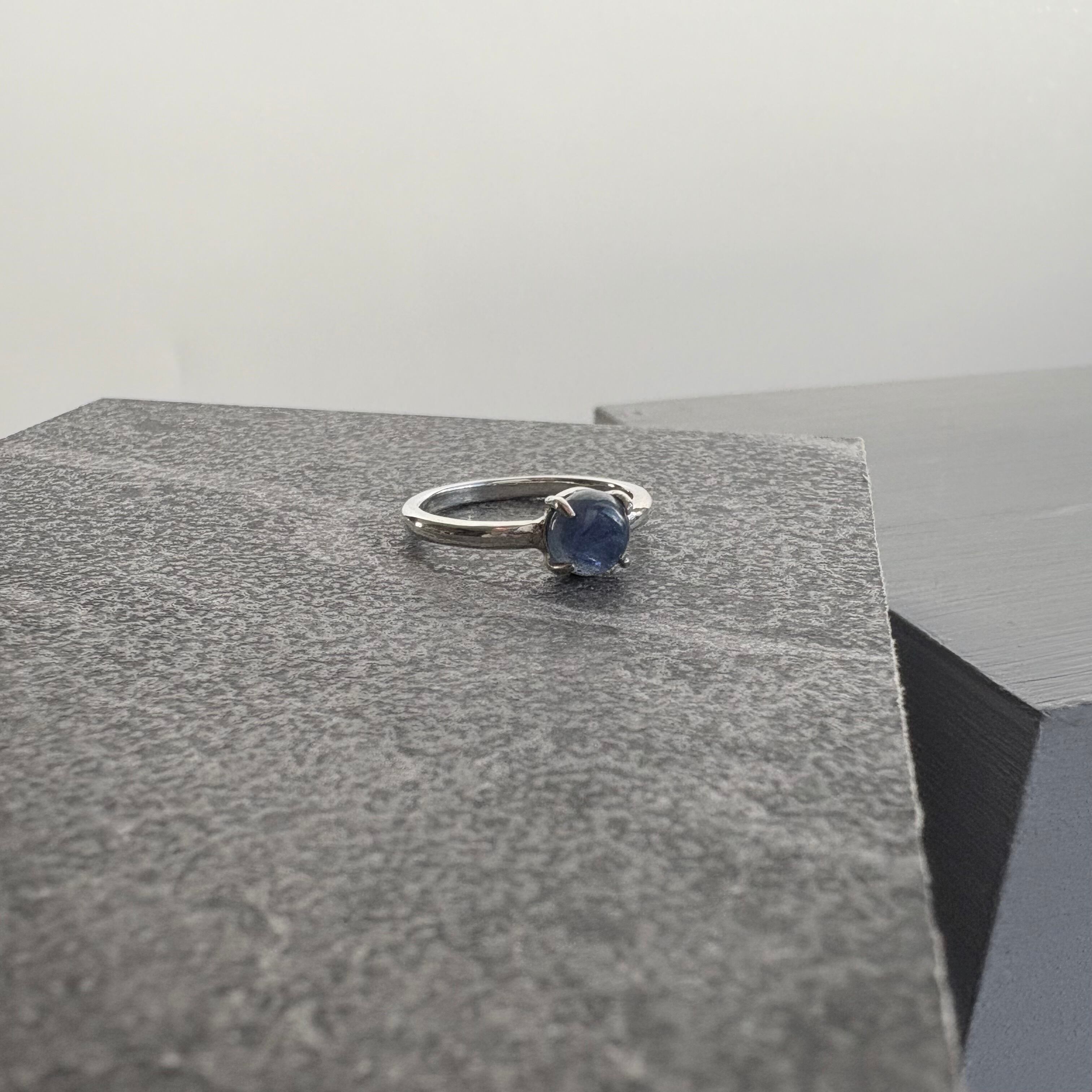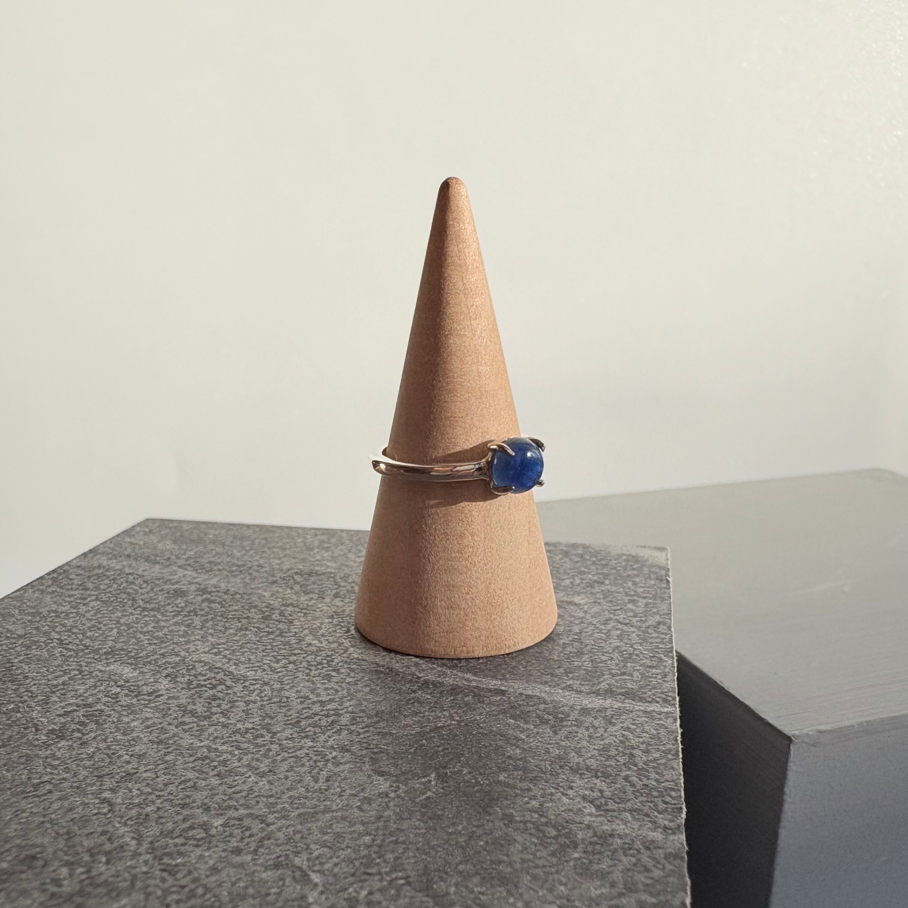 透明感のあるブルーが印象的な、カイヤナイトを一粒あしらったシルバーリング。