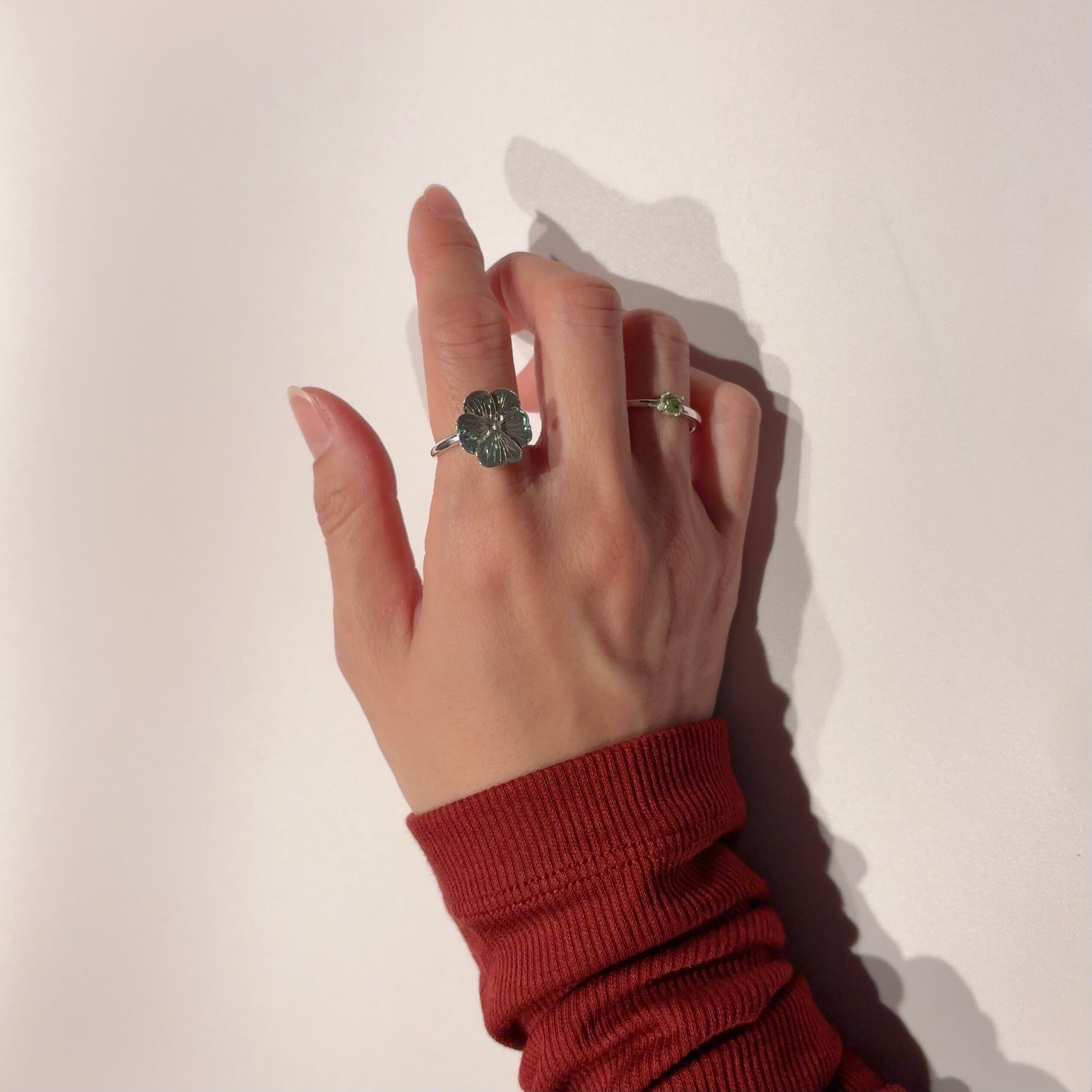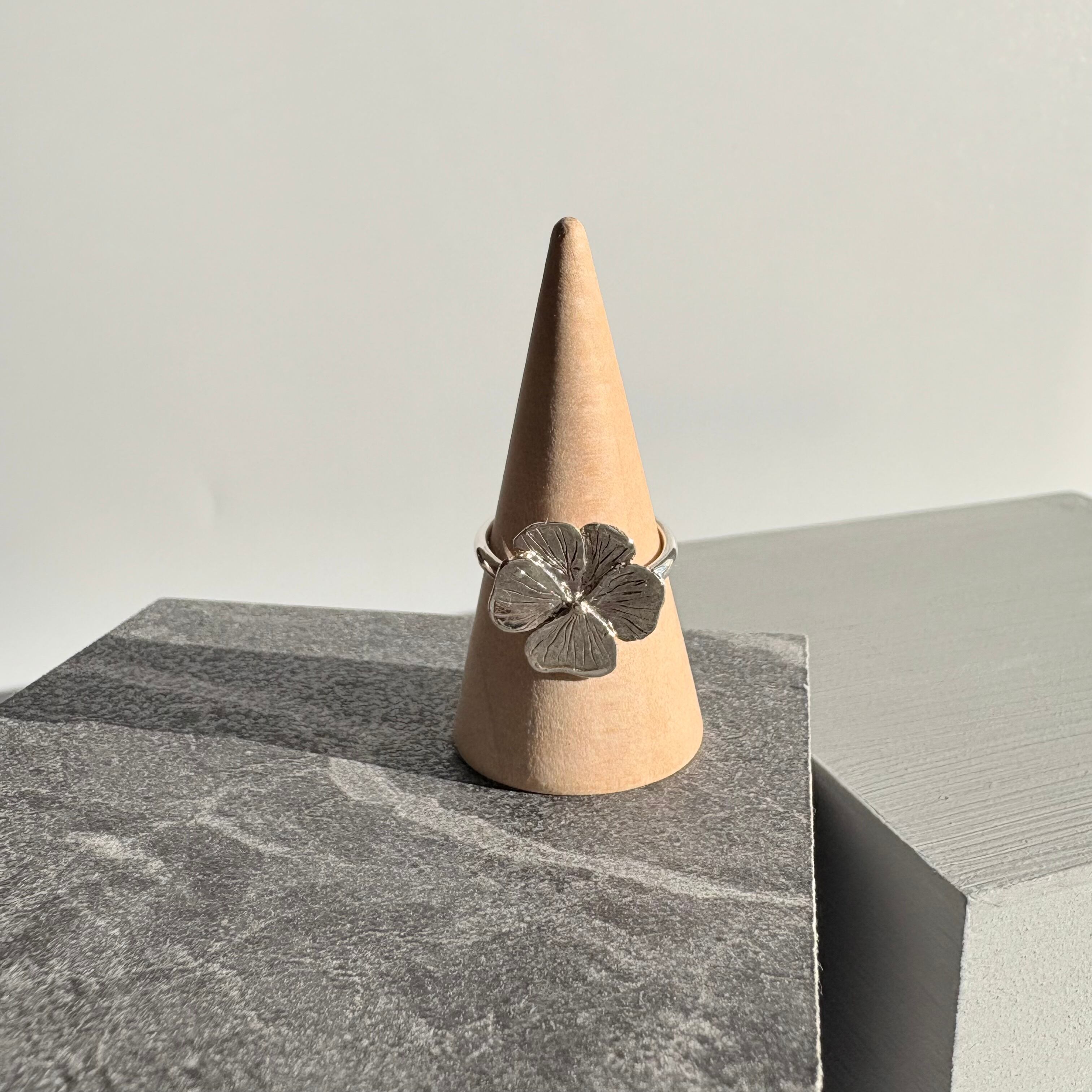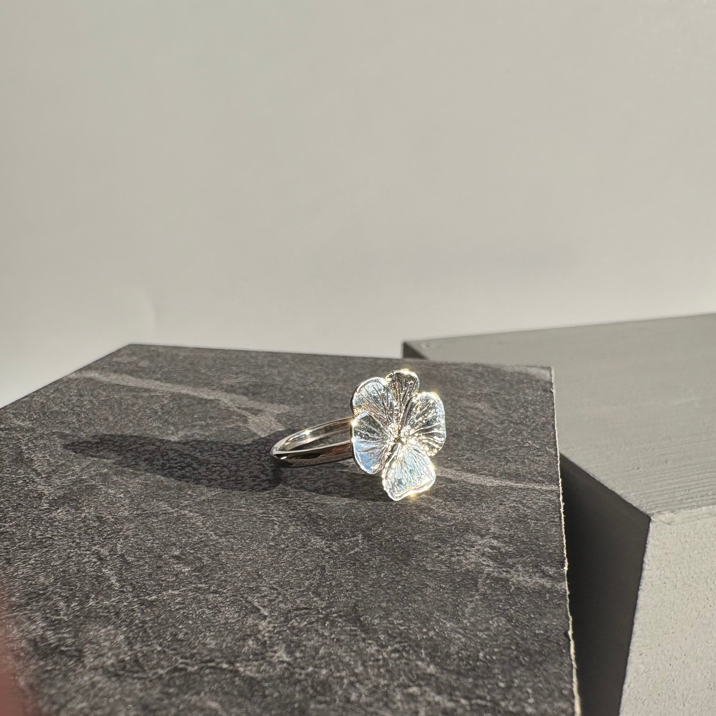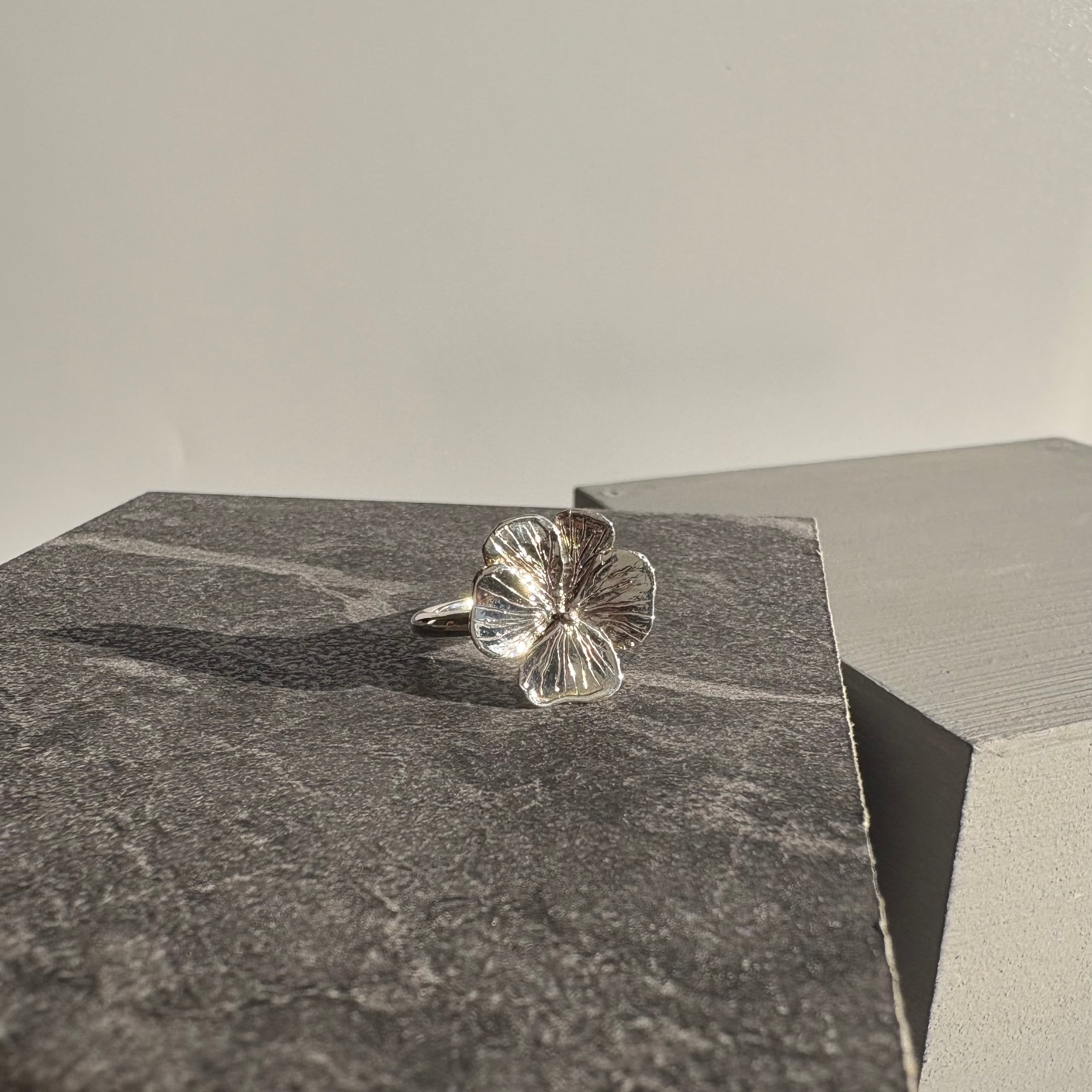 繊細に広がる花脈まで丁寧に表現した、パンジーモチーフのシルバーリング。